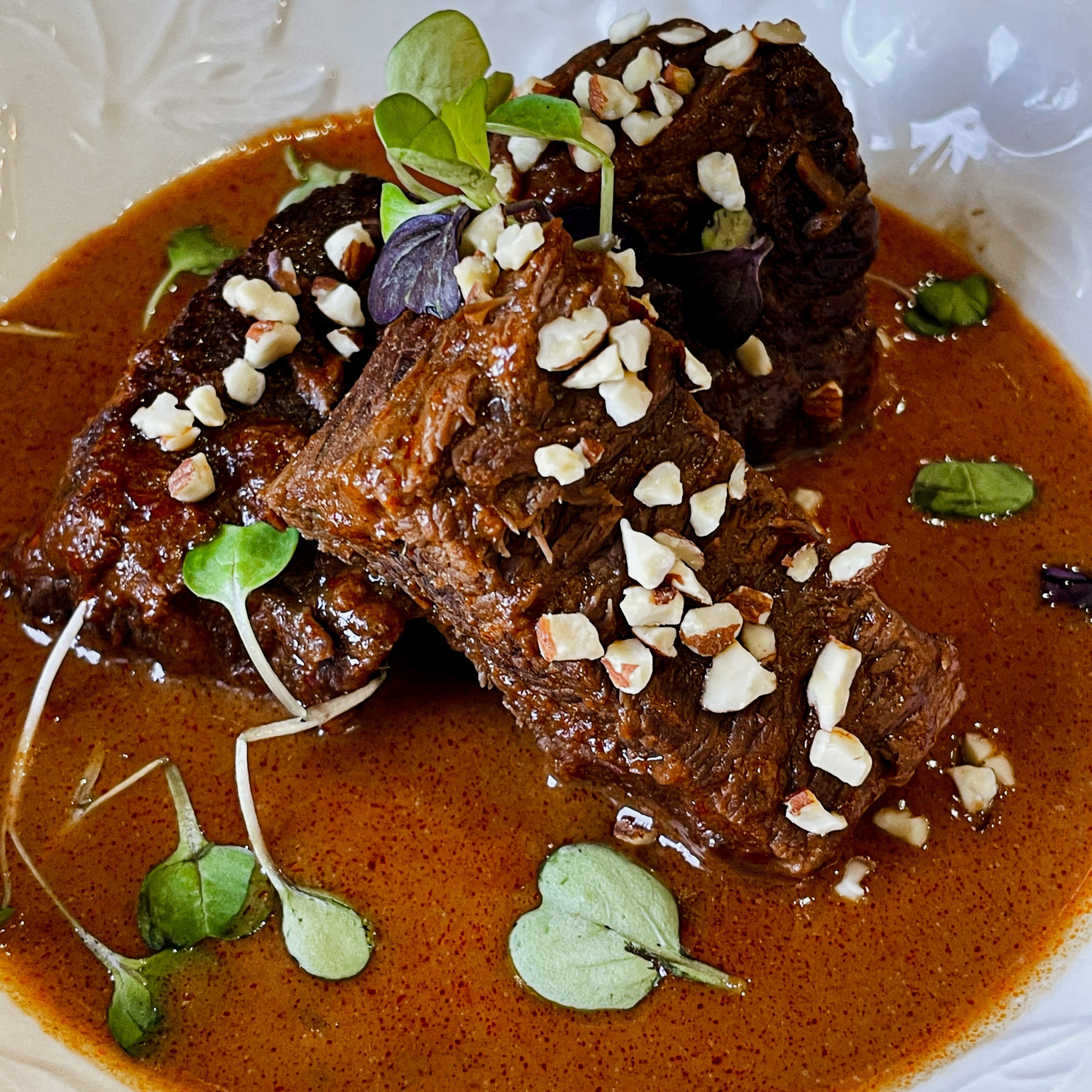 i found myself craving this after visiting Lotus of Siam in Vegas. There are just a few ingredients and the star is cuts of fork tender chuck roast that are braised in a curry sauce, inside a dutch oven.