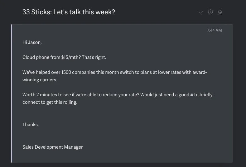 🚫 Don’t use made up numbers like “we’ve helped over 1500 companies,” prospects can see through this bullshit and it makes you look “Sus” as the kids say.